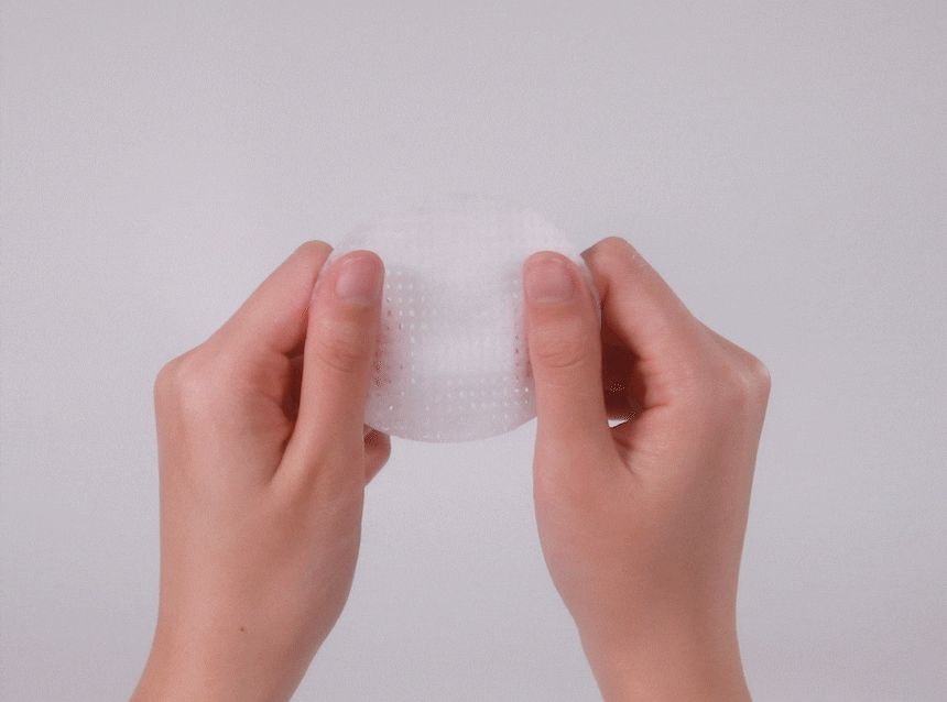 - Dual-sided pad exfoliates and hydrates in one step