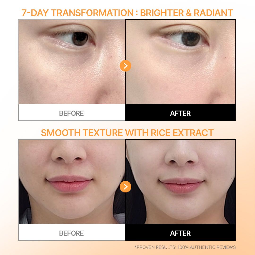 A powerful brightening ampoule that visibly evens out uneven skin tone with a high concentration of 20.35% Niacinamide. Infused with rice extract and probiotics, it delivers gentle yet effective care to deeply hydrate and brighten the skin. Its lightweight, clear serum texture absorbs quickly without stickiness, leaving the skin fresh and radiant.